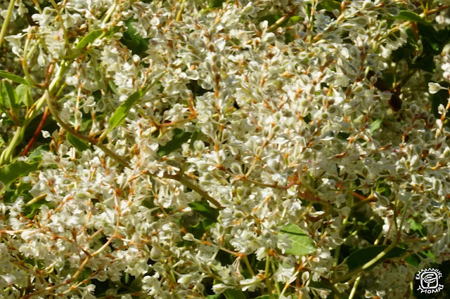 Les fleurs blanches ou roses, tachées de rouge, sont rassemblées en thyrses en forme de pyramide mais de nombreux variants existent. La couleur du centre de chaque fleur varie du jaune vers le rouge pour signaler aux insectes si la fleur contient du nectar ou si elle est déjà pollinisée. Le rouge indique aux insectes que la fleur est déjà pollinisée, le jaune qu'elle est intéressante à visiter. On peut remarquer que la couleur rouge est rarement bien visible pour les insectes et donc peu utilisée comme signal positif pour les insectes.
